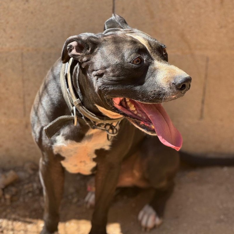 Es un pitbull de tamaño pequeño, necesita licencia PPP. Está acostumbrado a vivir en un piso, aunque necesita ejercicio para quemar su energía.