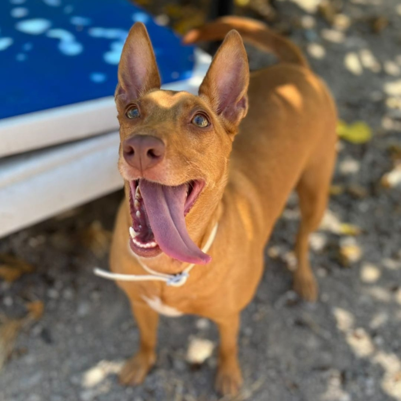 Riu es un macho castrado de 4 añitos. Tiene un carácter muy noble, cariñoso y sociable con otros perros. A veces se le va de las manos porque es un poco bruto jugando… ¡Pero lo hace con buena intención!
